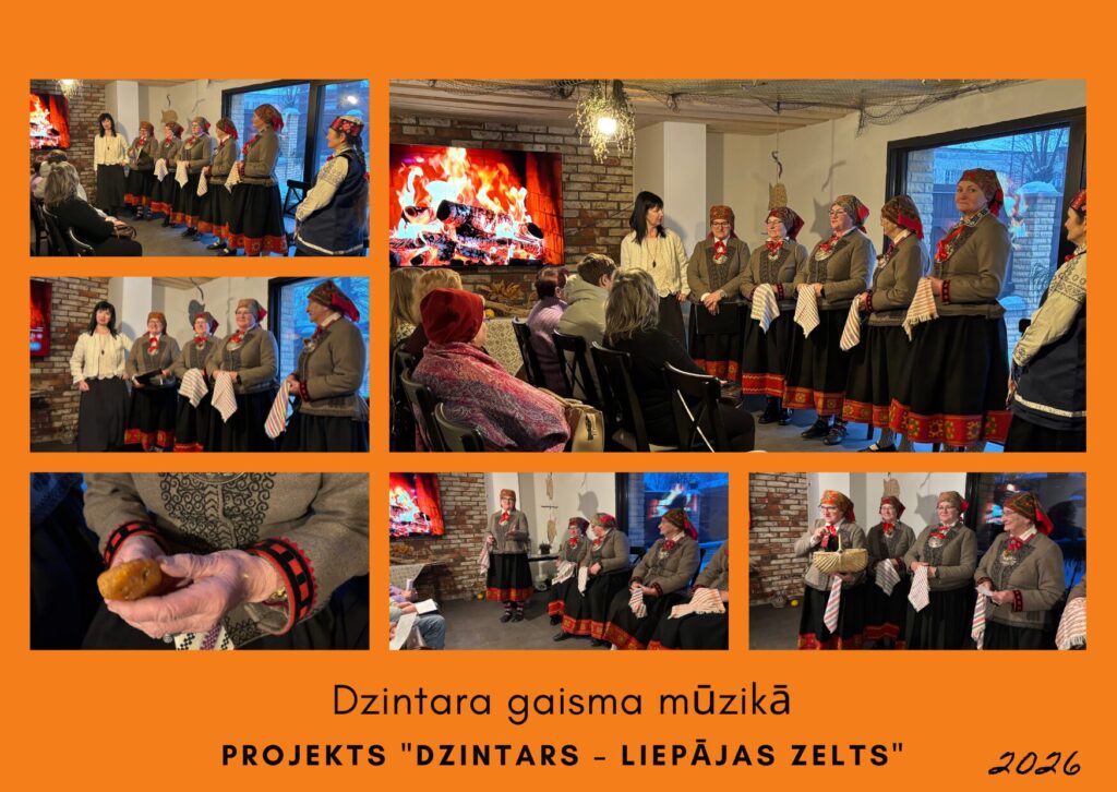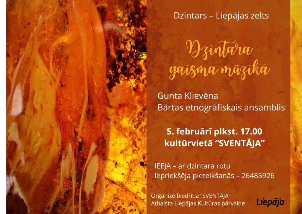 Pēc vētrām, kad lielie vēji un jūras bangas pierimušas, dzintaru meklēšana var izvērsties par īpaši jauku nodarbi. Laiku, kad ir ziemas spelgonis, varam nogaidīt un sasildīties stāstos un mūzikā par dzintaru. 5.februārī kultūrvietā SVENTĀJA notika skanīga meistarklase “Dzintara gaisma mūzikā”, kur dzintars atspīdēja mūzikā, dziesmās un stāstos. Īpašu noskaņu radīja Bārtas etnogrāfiskais ansamblis, kas ar savām dziesmām un tradicionālo skanējumu piepildīja telpu ar Dienvidkurzemes elpu un garu. Paldies Bārtas etnogrāfiskajam ansamblim un visiem meistarklases dalībniekiem par kopā būšanu, dziesmām un siltumu! Meistarklasi organizē biedrība “SVENTĀJA” Projektu “Dzintars – Liepājas zelts” atbalsta Liepājas Kultūras pārvalde.