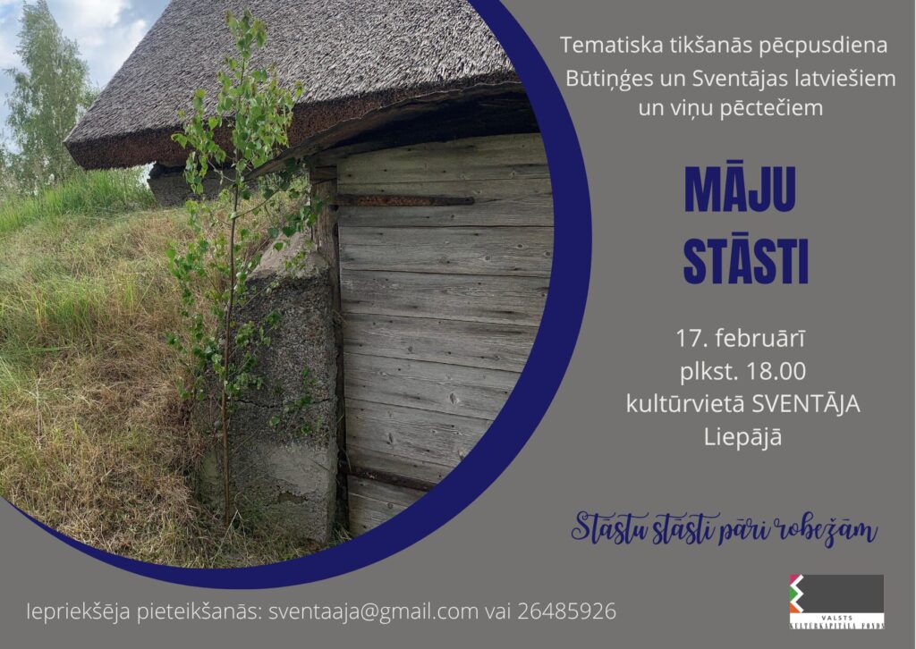 Dalībnieki iepazīs māju nosaukumus, ēku tradicionālo izkārtojumu, saimniecību vēsturi. Tiks stāstīts par dzīves apstākļiem un ģimenes tradīcijām dažādās mājās. Praktiskajā daļā notiks latviešu rotaļu meistarklase. Tikšanās notiek kultūrvietā SVENTĀJA. Pasākums ir daļa no projekta “Stāstu stāsti pāri robežām”. Projektu atbalsta Valsts kultūrkapitāla fonds.