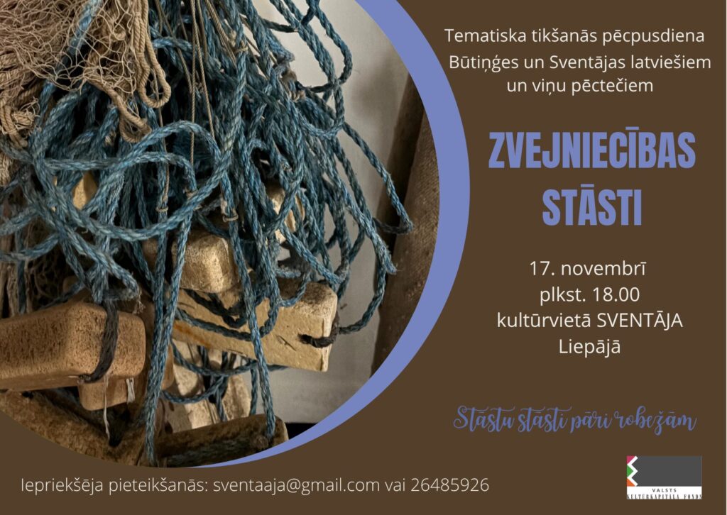 Šī tikšanās veltīta Sventājas zvejniecības tradīcijām. Dalībnieki uzzinās par zvejnieku dzīvi, darba rīkiem un ticējumiem. Praktiskajā daļā notiks vīriešu tautastērpa mēteļa šūšanas meistarklase. Tikšanās notiek kultūrvietā SVENTĀJA. Pasākums ir daļa no projekta “Stāstu stāsti pāri robežām”. Projektu atbalsta Valsts kultūrkapitāla fonds.