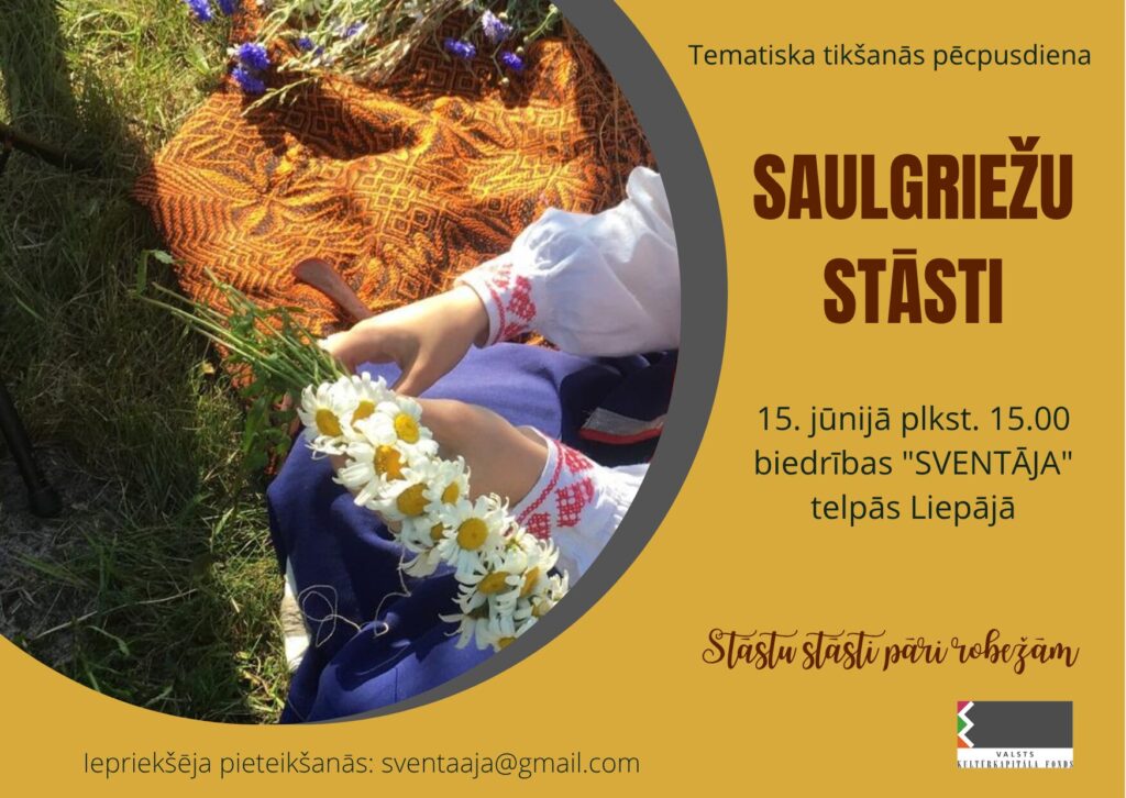 Tematiskā tikšanās pēcpusdiena veltīta saulgriežu tradīcijām un to nozīmei Būtiņģes un Sventājas pēcteču kultūrā. Dalībnieki klausīsies stāstus par vasaras saulgriežu rituāliem, ticējumiem un kopienas dzīvi. Praktiskajā daļā notiks aušanas meistarklase, kur varēs apgūt pamatus darbam uz stellēm. Tikšanās notiek kultūrvietā SVENTĀJA. Pasākums ir daļa no projekta “Stāstu stāsti pāri robežām”. Projektu atbalsta Valsts kultūrkapitāla fonds.