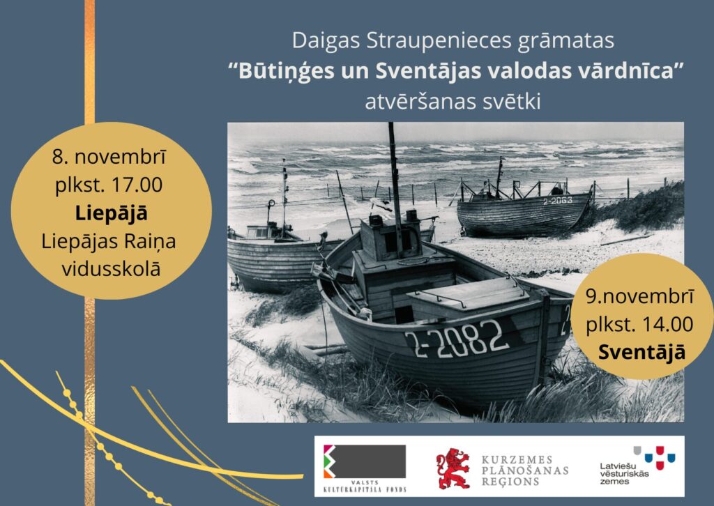Ir atbalstīts projekts “Grāmatas “Būtiņģes un Sventājas valodas vārdnīca” izdošana” Kurzemes plānošanas reģiona īstenotās „Kurzemes kultūras programma 2024” VKKF mērķprogrammā „Latviešu vēsturisko zemju attīstības programma”.