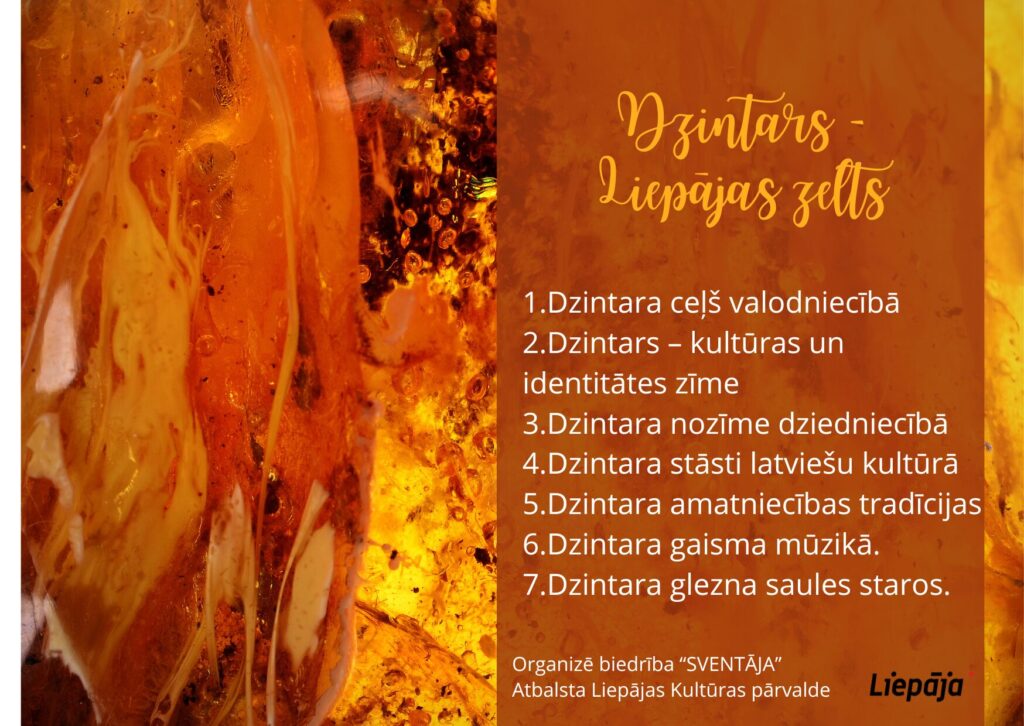 Dzintars ir gaismas pilienā ieslēgts mūžības stāsts. Tas glabā jūras elpu, sveķu smaržu un saules siltumu. Latviešu kultūrā dzintars ir maģisks dārgakmens, Saules simbols, mīlestības un skaistuma zīme, veselības nesējs, arī jūras asara. “Dzintars – Liepājas zelts” ir kultūrizglītojošs projekts, kura centrā ir dzintars kā Baltijas reģiona, Latvijas un Liepājas identitātes simbols. Projekta ietvaros tiks rīkotas 7 meistarklases, ietverot dzintaru kā “Liepājai – 400” simbolu un aplūkojot dzintara nozīmi dažādos kultūras un mākslas aspektos – tautas medicīnā, folklorā, valodā, amatniecībā, literatūrā, mūzikā un vizuālajā mākslā.